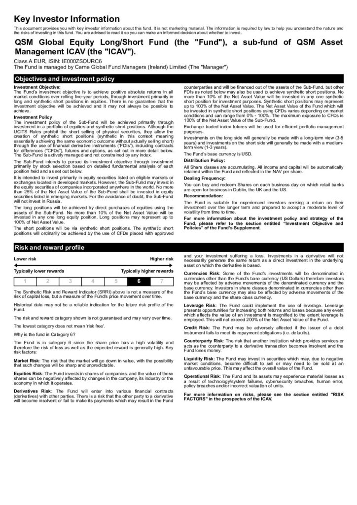 The QSM Global Equity Long / Short Fund’s investment objective is to generate positive returns on a five-year rolling basis.